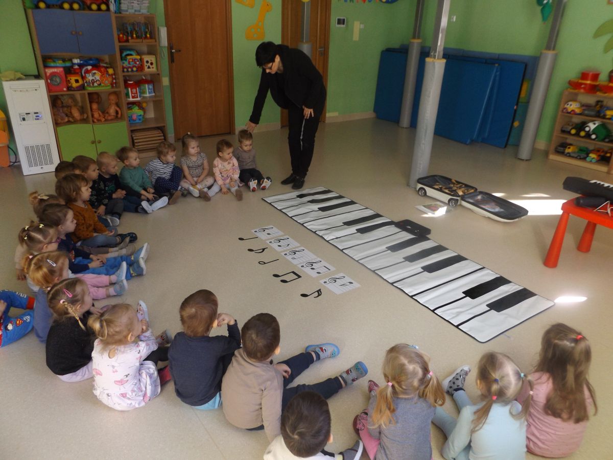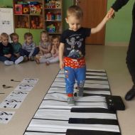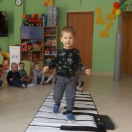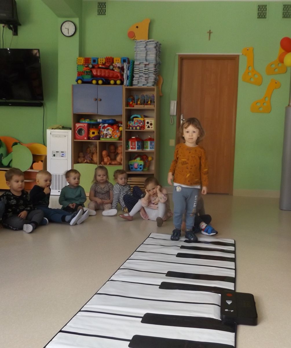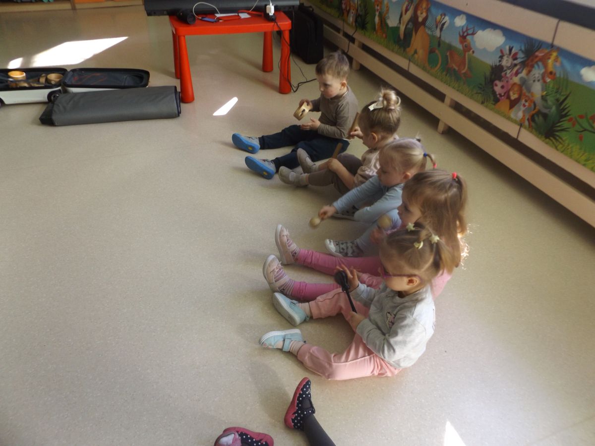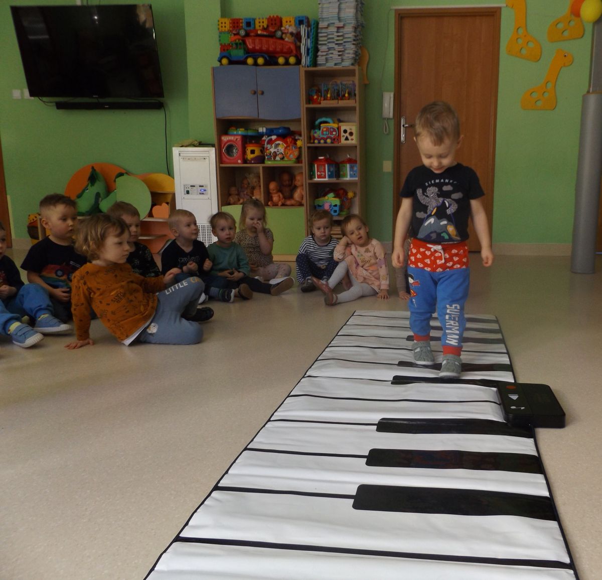 Podczas dzisiejszej rytmiki dzieciaki poznawały nutki, grały, tańczyły