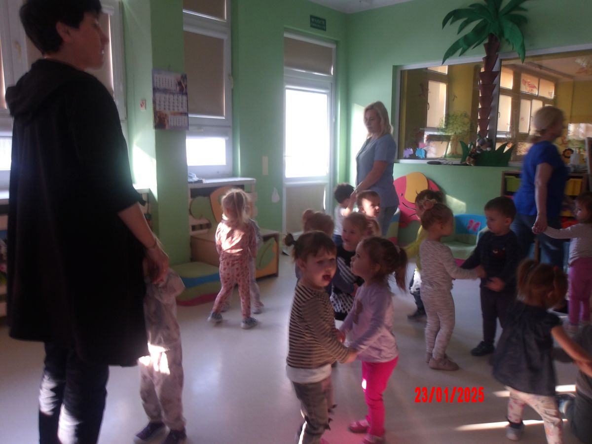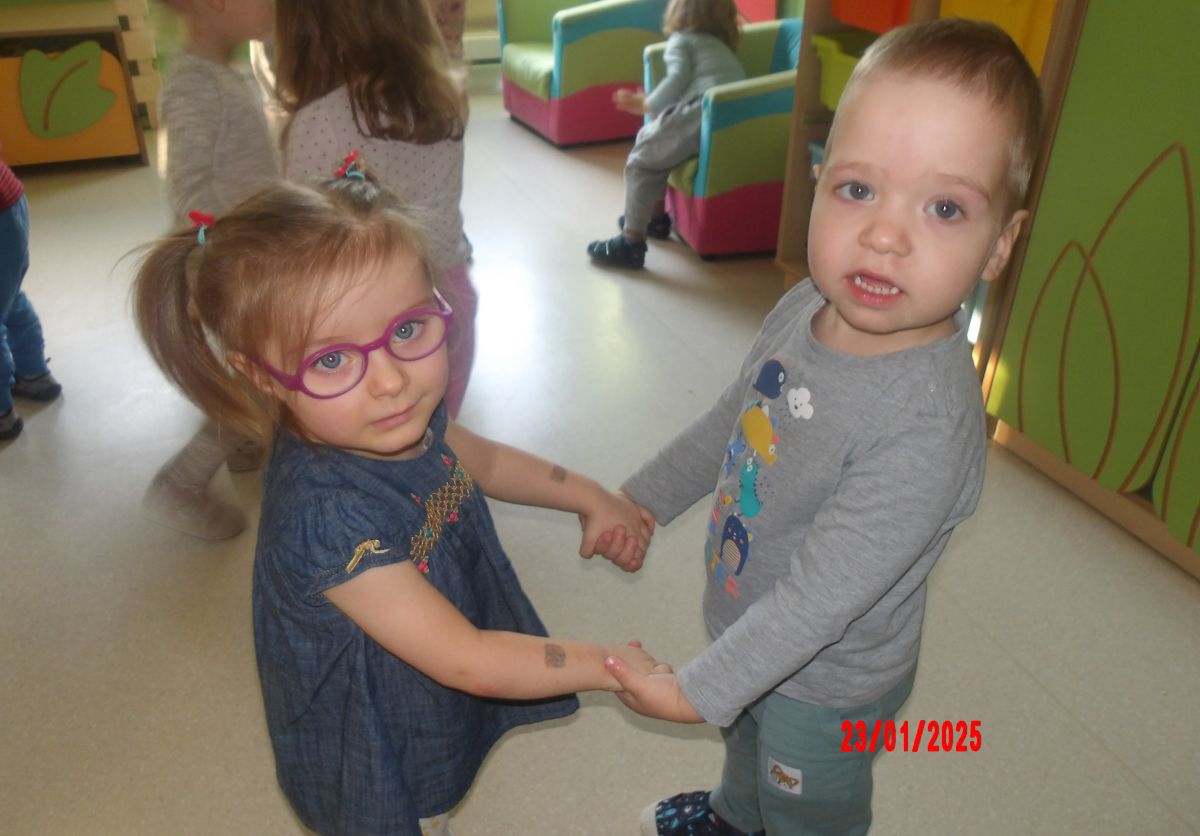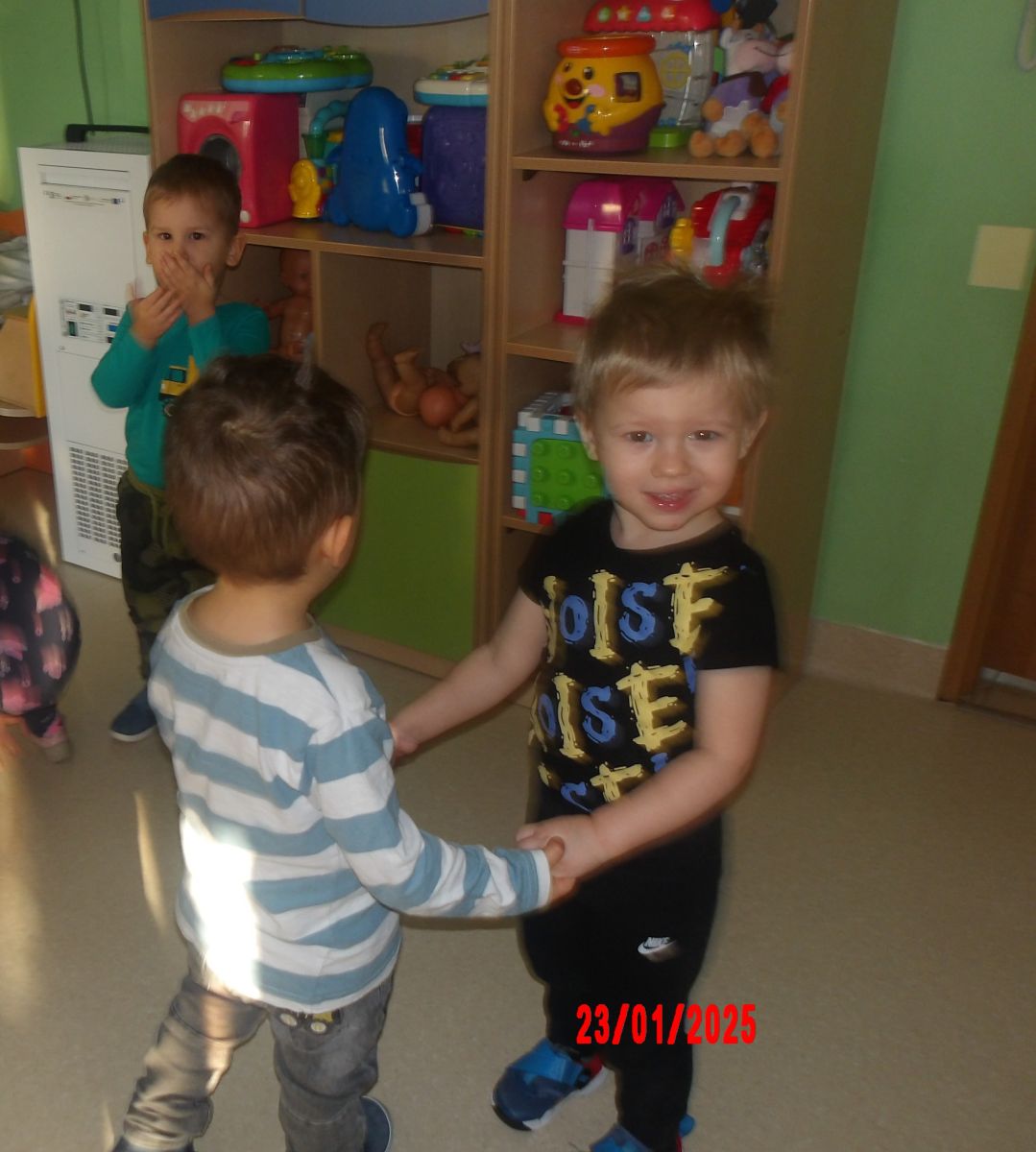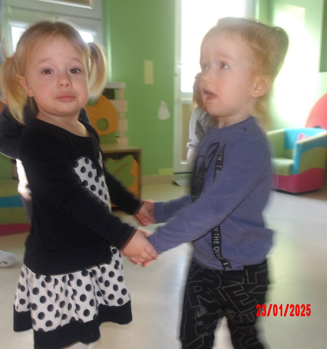 Opublikowano: pon., 01/27/2025 - 14:04 Dziś Starszaczki bawiły się przy piosenkach " Śpiewa babcia, śpiewa dziadek", " Babciu , droga babciu", " Koci, koci łapci" oraz tańczyły polkę dla babci i dziadka.