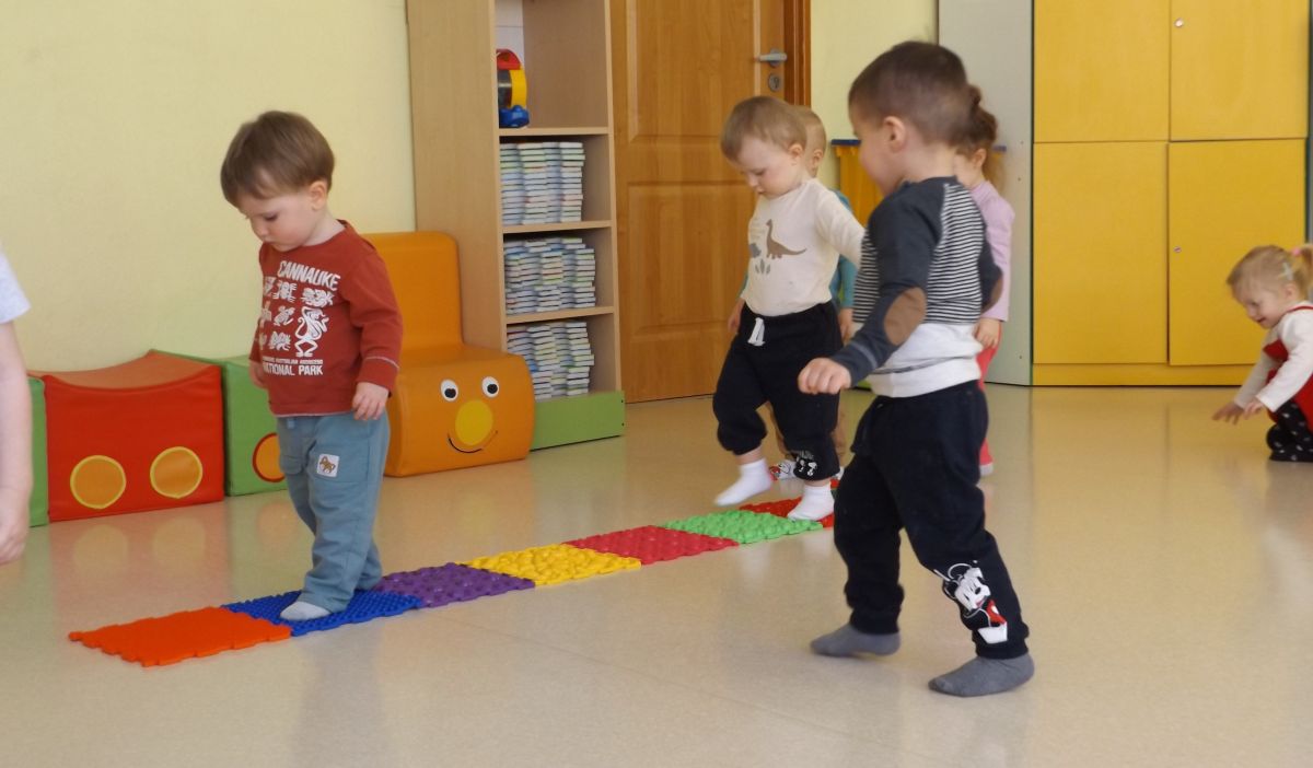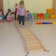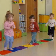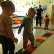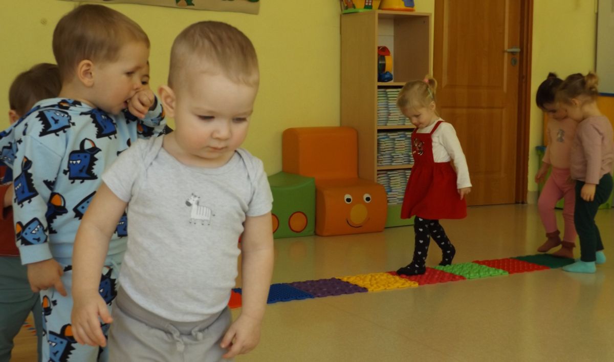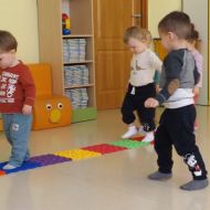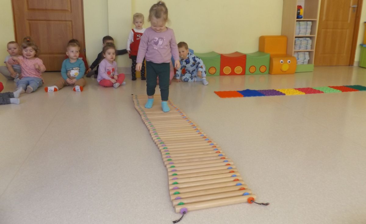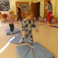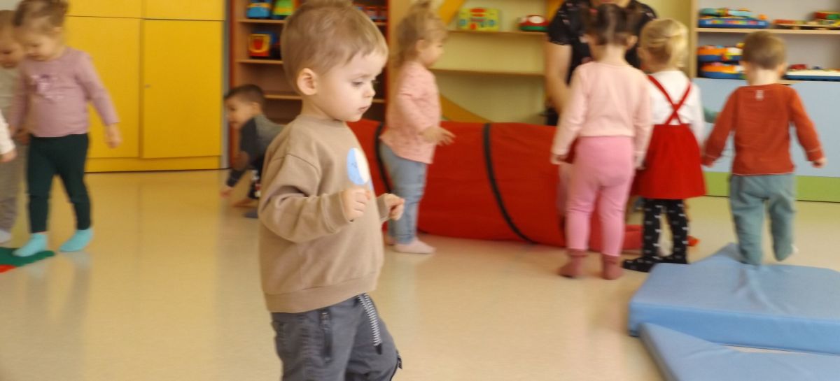 Opublikowano: śr., 03/19/2025 - 08:28 Maluszki pokonywały żłobkowy tor przeszkód. W ten sposób doskonaliły sprawność ruchową, koncentrację oraz równowagę.