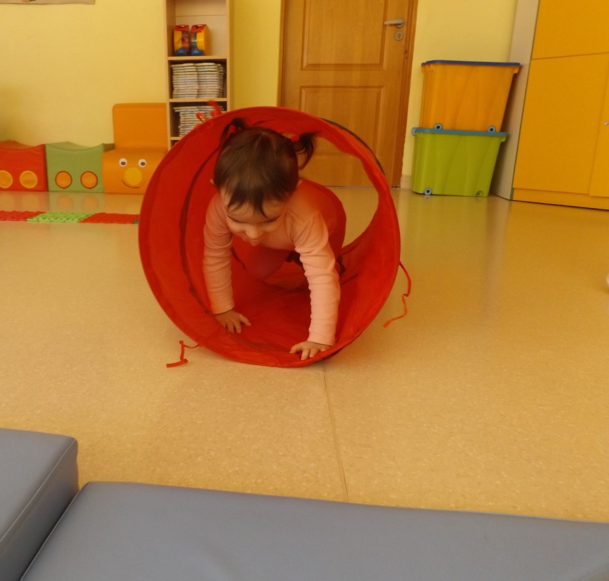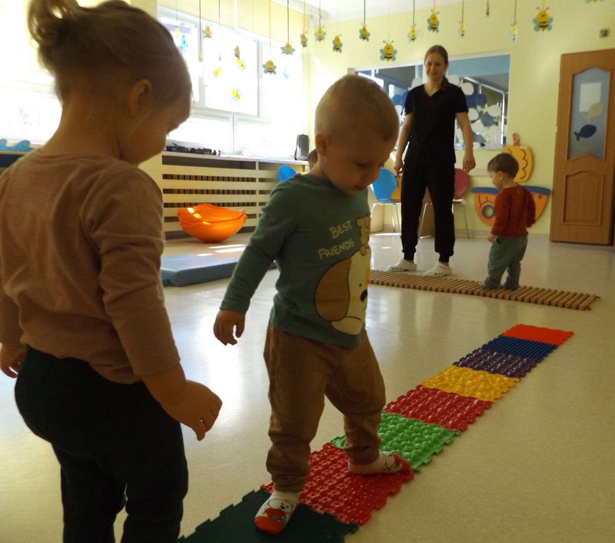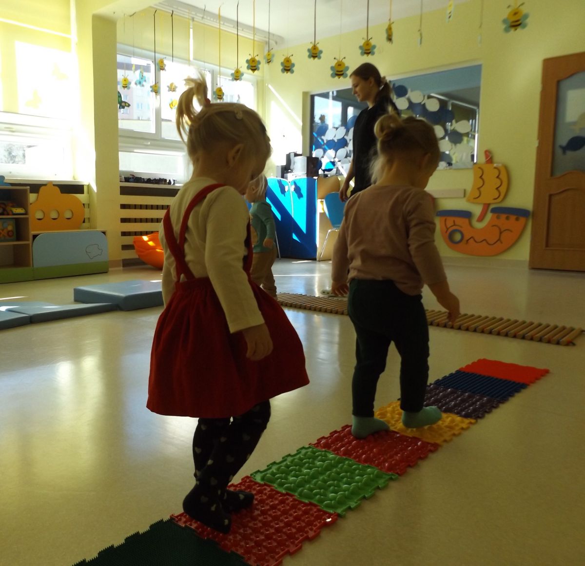 Opublikowano: śr., 03/19/2025 - 08:28 Maluszki pokonywały żłobkowy tor przeszkód. W ten sposób doskonaliły sprawność ruchową, koncentrację oraz równowagę.