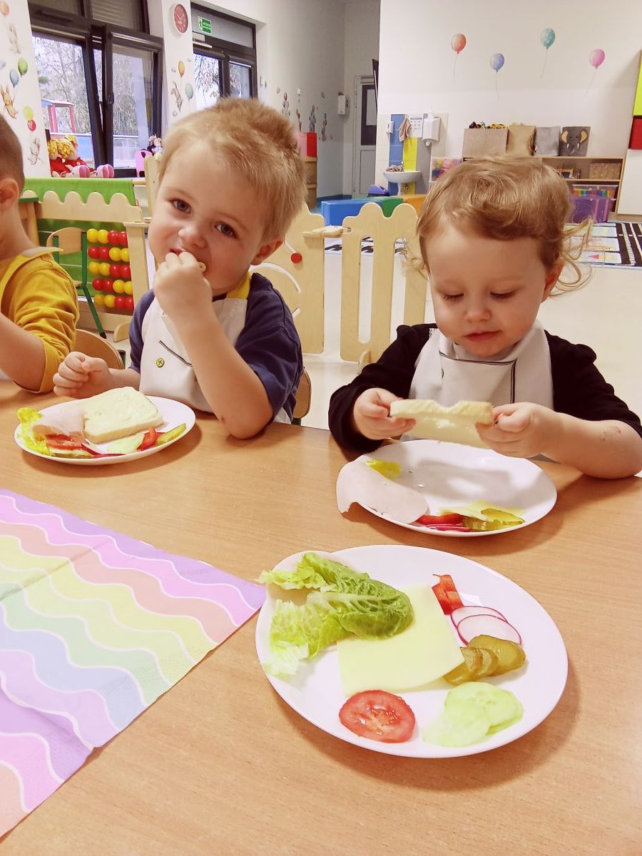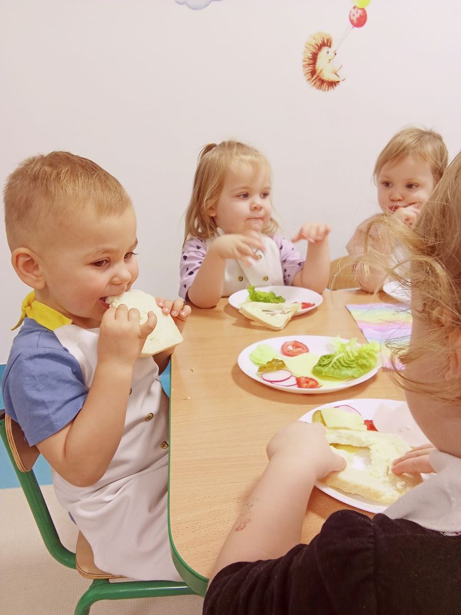W poszukiwaniu zdrowia tygryski wykonały samodzielnie własne kanapeczki z przygotowanych produktów. Oczywiście wcześniej wszyscy umyliśmy rączki 🧼🫧