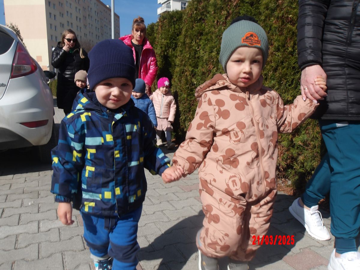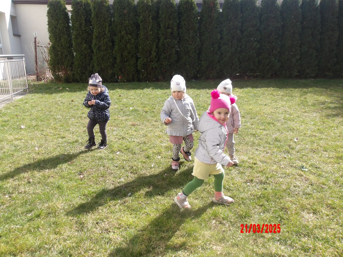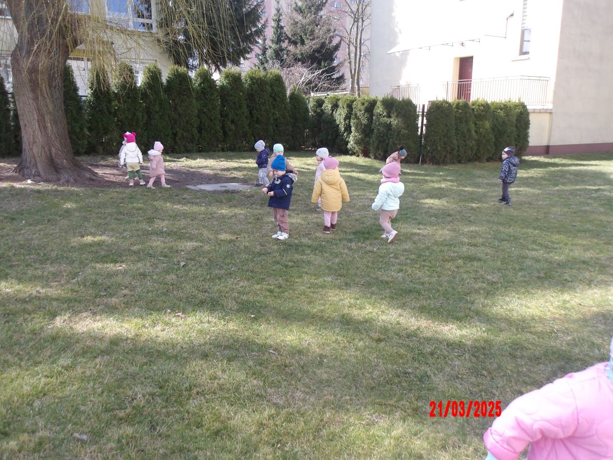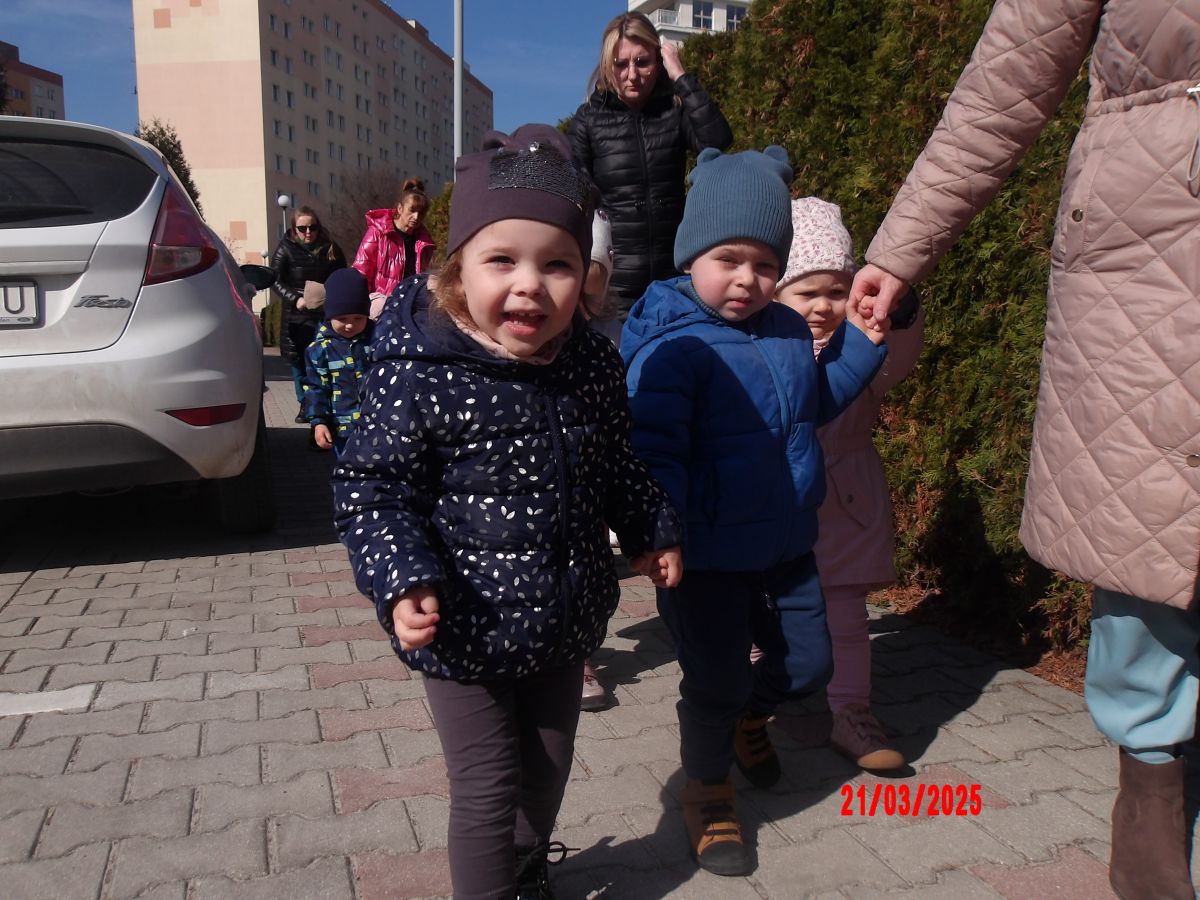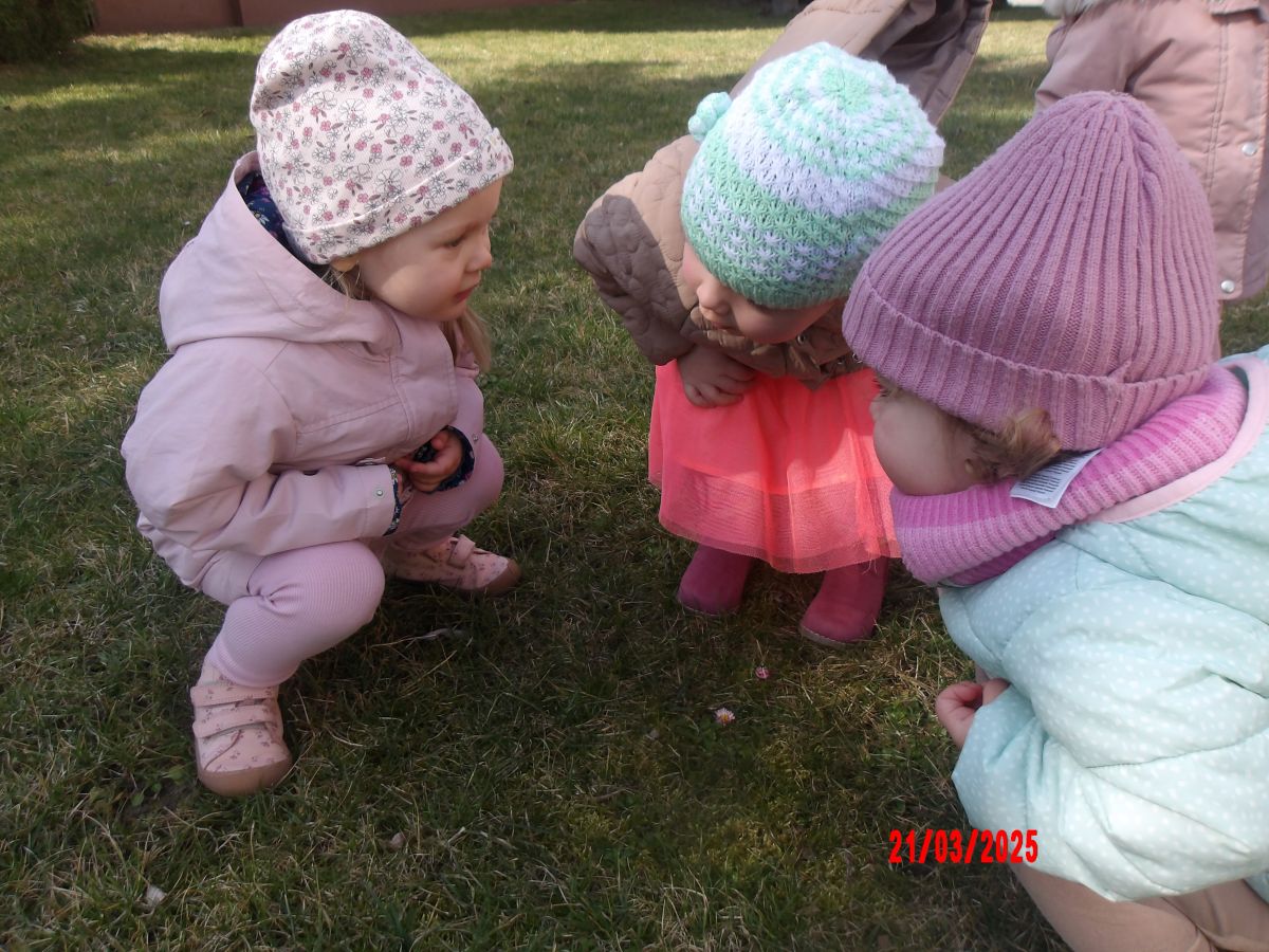 Kolejną atrakcją był spacer w poszukiwaniu oznak Wiosny. Dzieci radośnie reagowały na wesołe trele ptaków i ciepłe słoneczko. Ku radości wszystkich znaleźliśmy wiosenne fiołki i stokrotki. Witaj Wiosno!