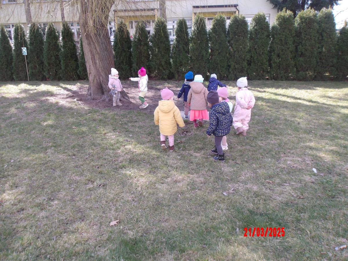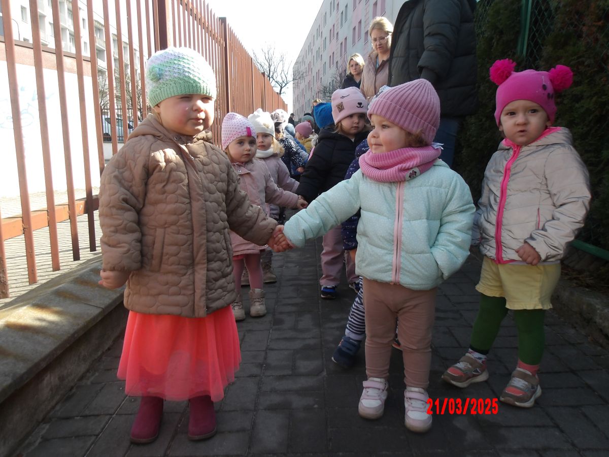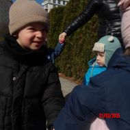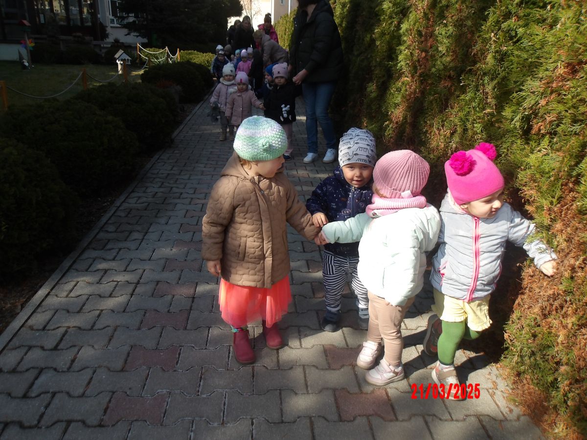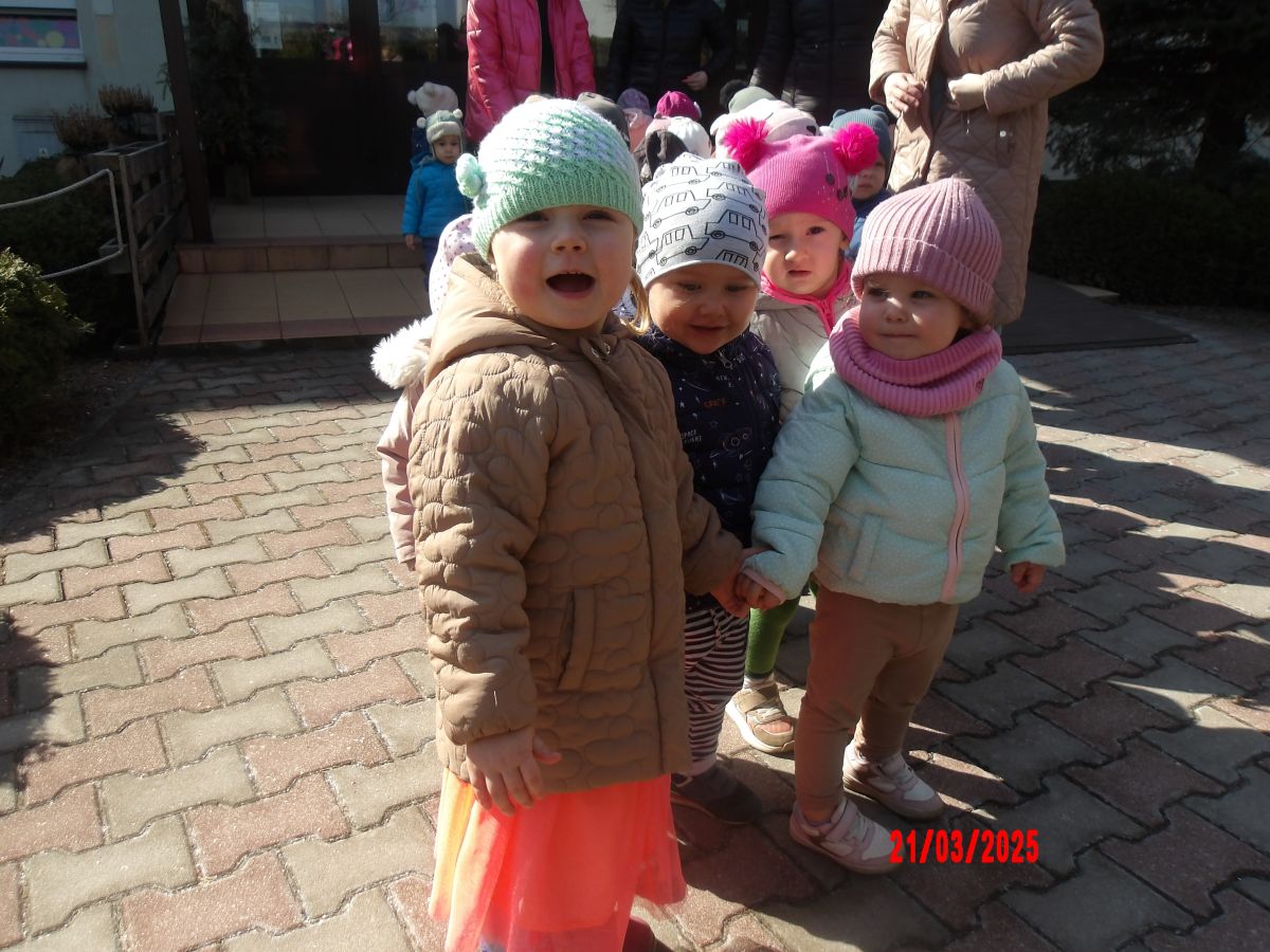 Kolejną atrakcją był spacer w poszukiwaniu oznak Wiosny. Dzieci radośnie reagowały na wesołe trele ptaków i ciepłe słoneczko. Ku radości wszystkich znaleźliśmy wiosenne fiołki i stokrotki. Witaj Wiosno!