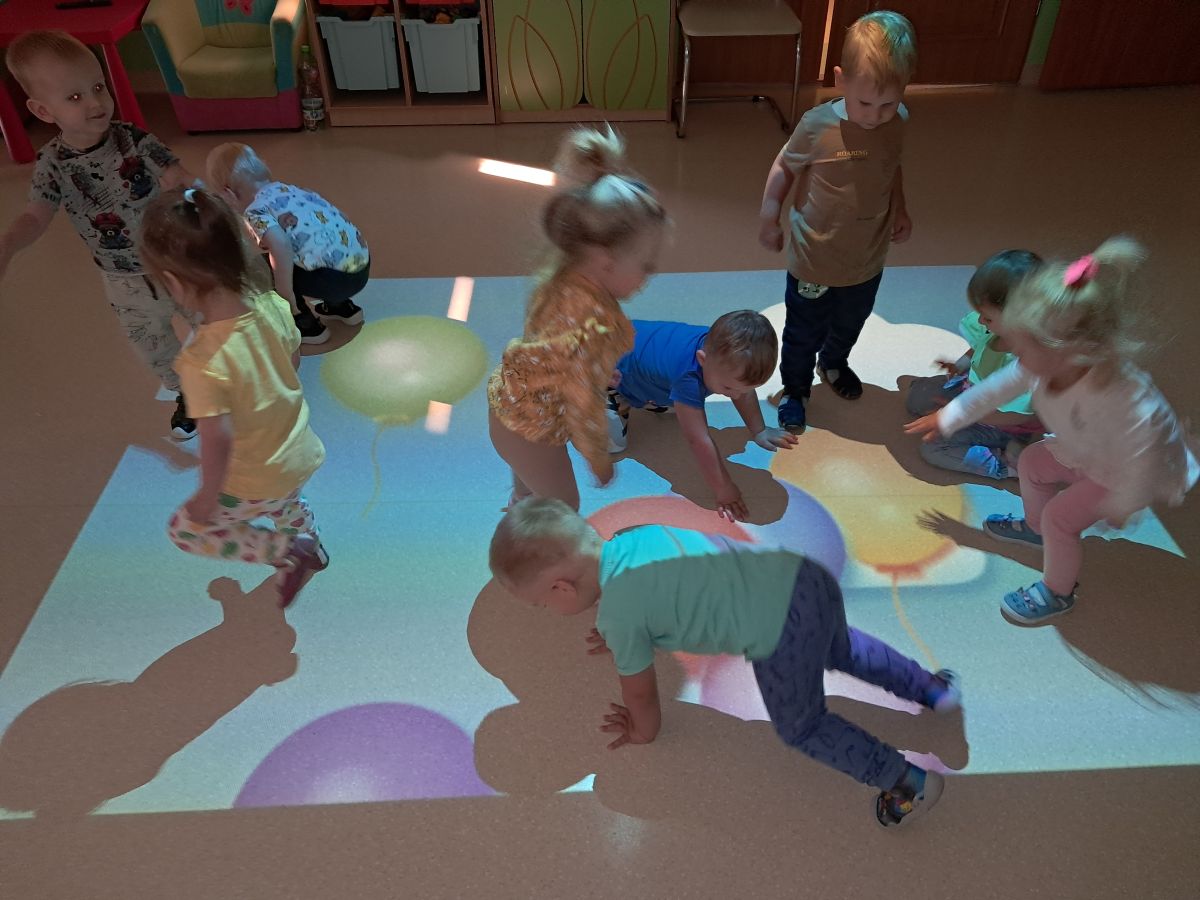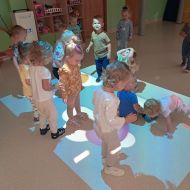 Adaptacja polega między innymi na poznawaniu się i budowaniu zaufania. Ciocie służą swoimi ramionami w trudnych chwilach, dbają o bezpieczeństwo, zapewniają zabawę oraz edukację. Jedną z wielu rozrywek, która uruchamia wyobraźnię, uczy szybkiego reagowania oraz daje mnóstwo radości jest dywan interaktywny.
