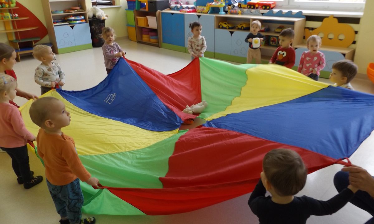 Opublikowano: śr., 02/26/2025 - 08:22 Zabawy z chustą integrują grupę, uczą dzieci współdziałania, ćwiczą spostrzegawczość i refleks.