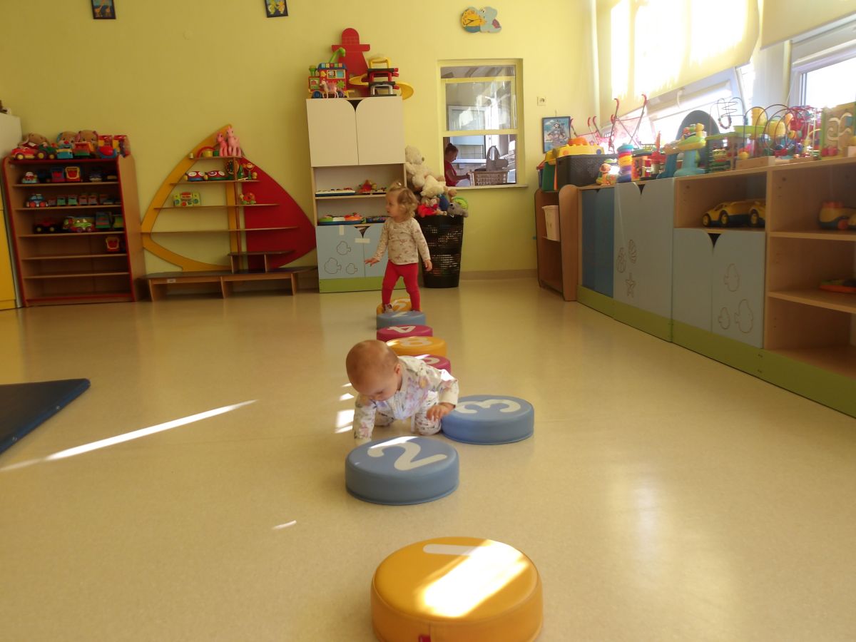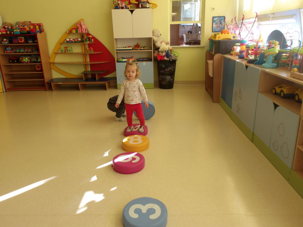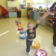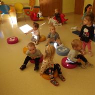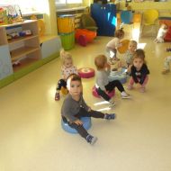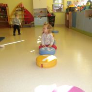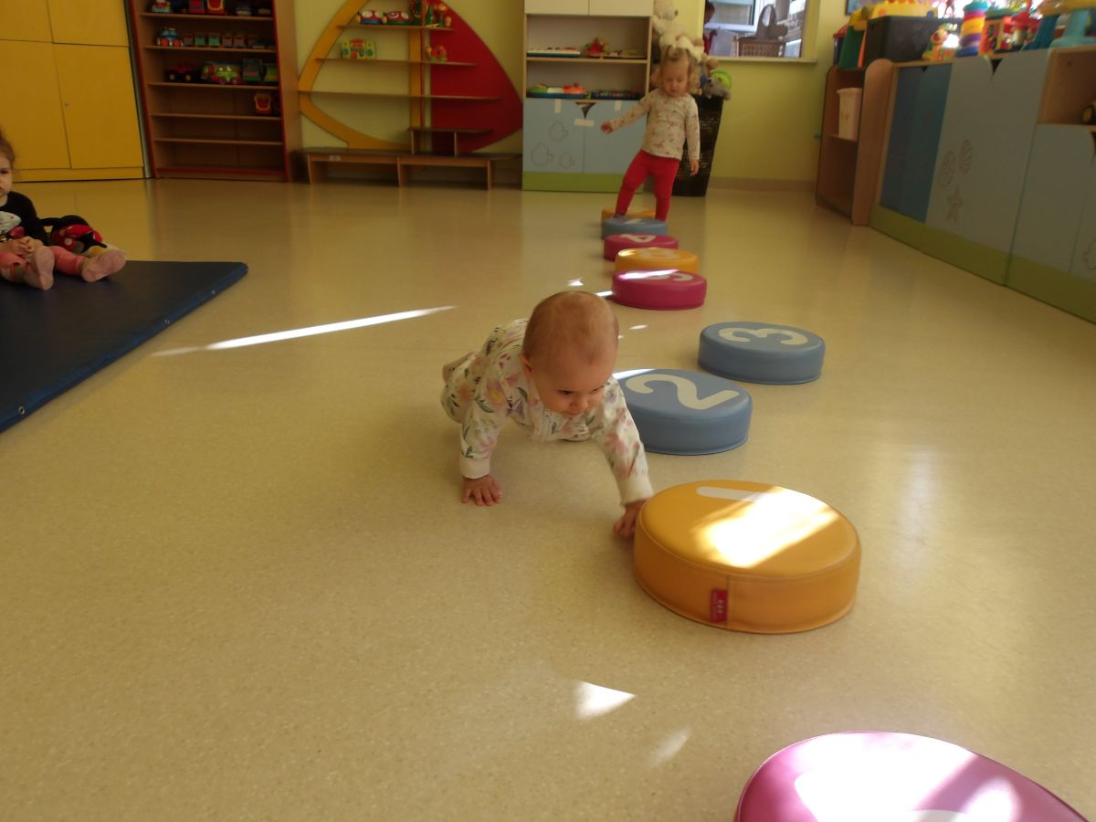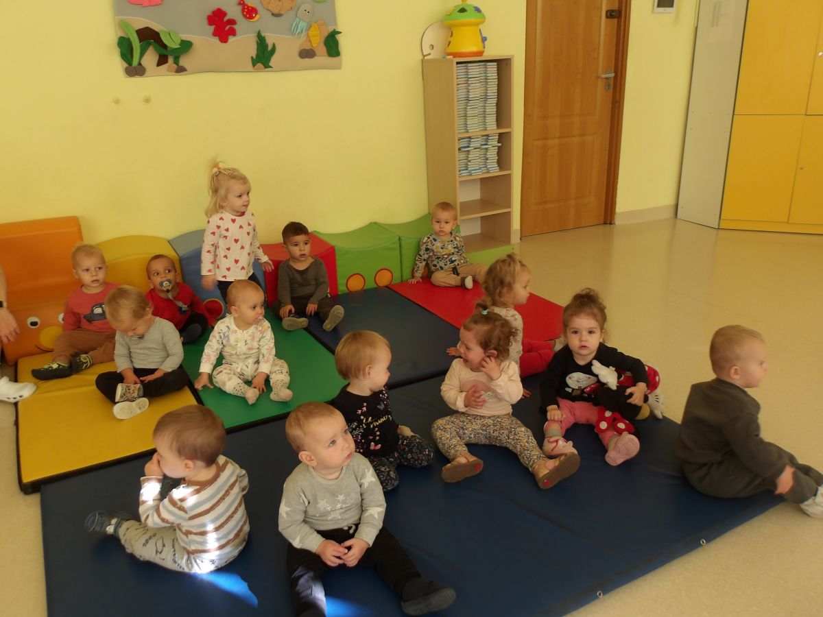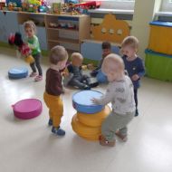 Opublikowano: czw., 10/31/2024 - 13:55 Nasze Maluszki chętnie bawią się kolorowymi krążkami: toczą je, układają jeden na drugim, wspinają się po nich a także siedzą słuchając opowiadania cioci.