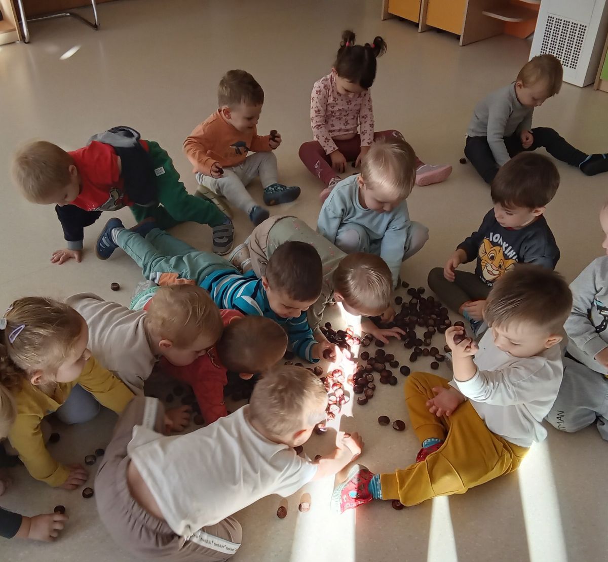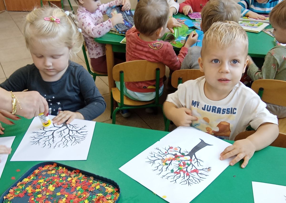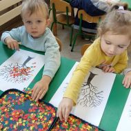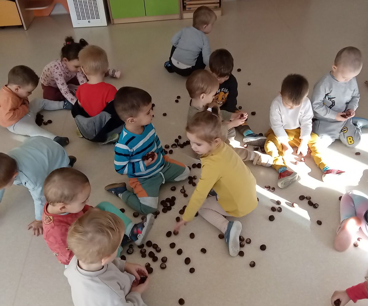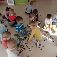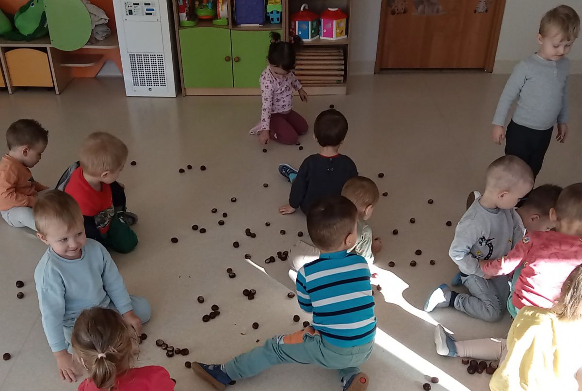 Jesienne drzewo oraz piosenki i zabawy z kasztankami