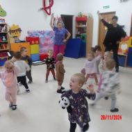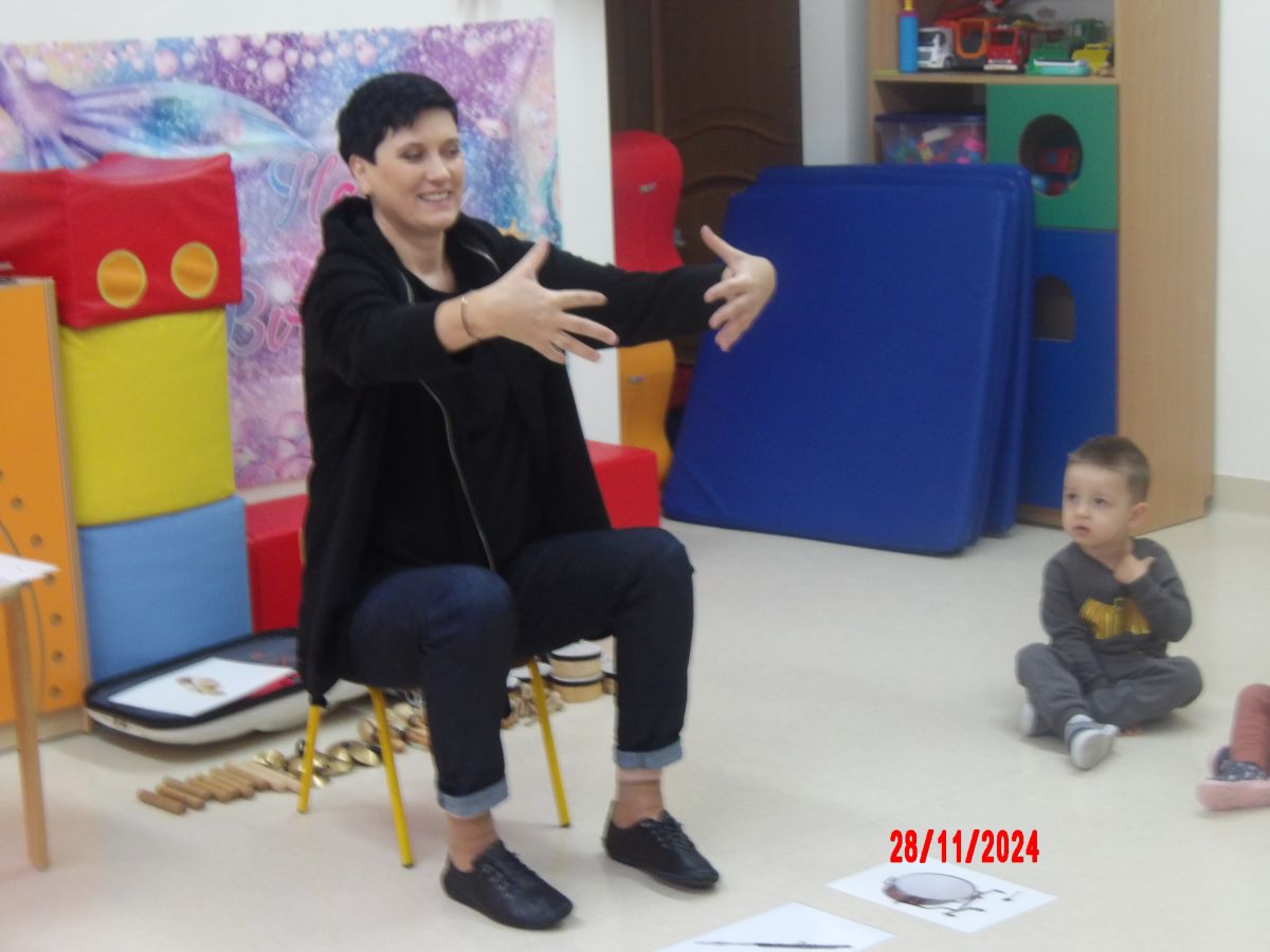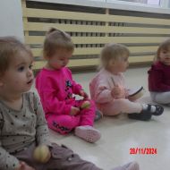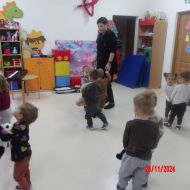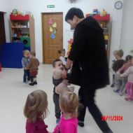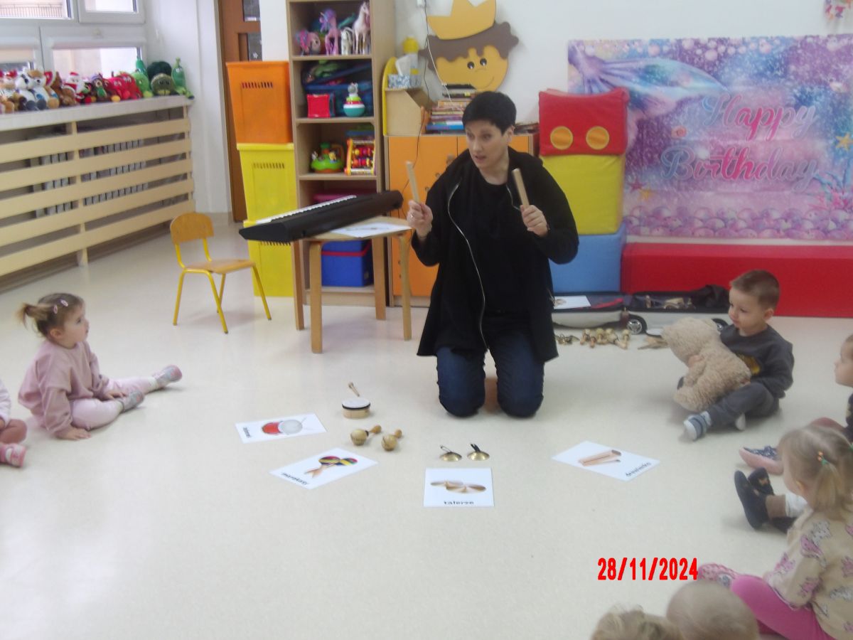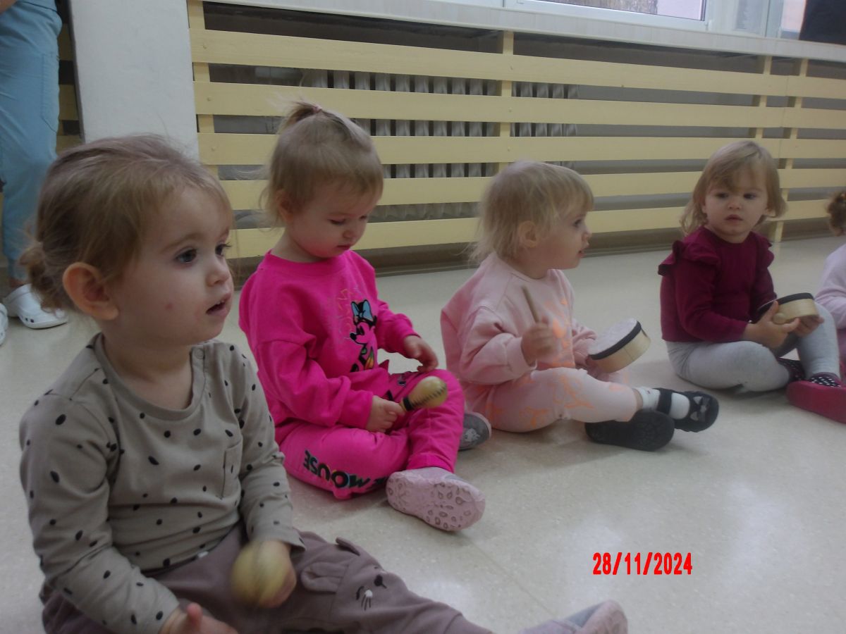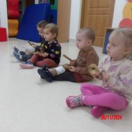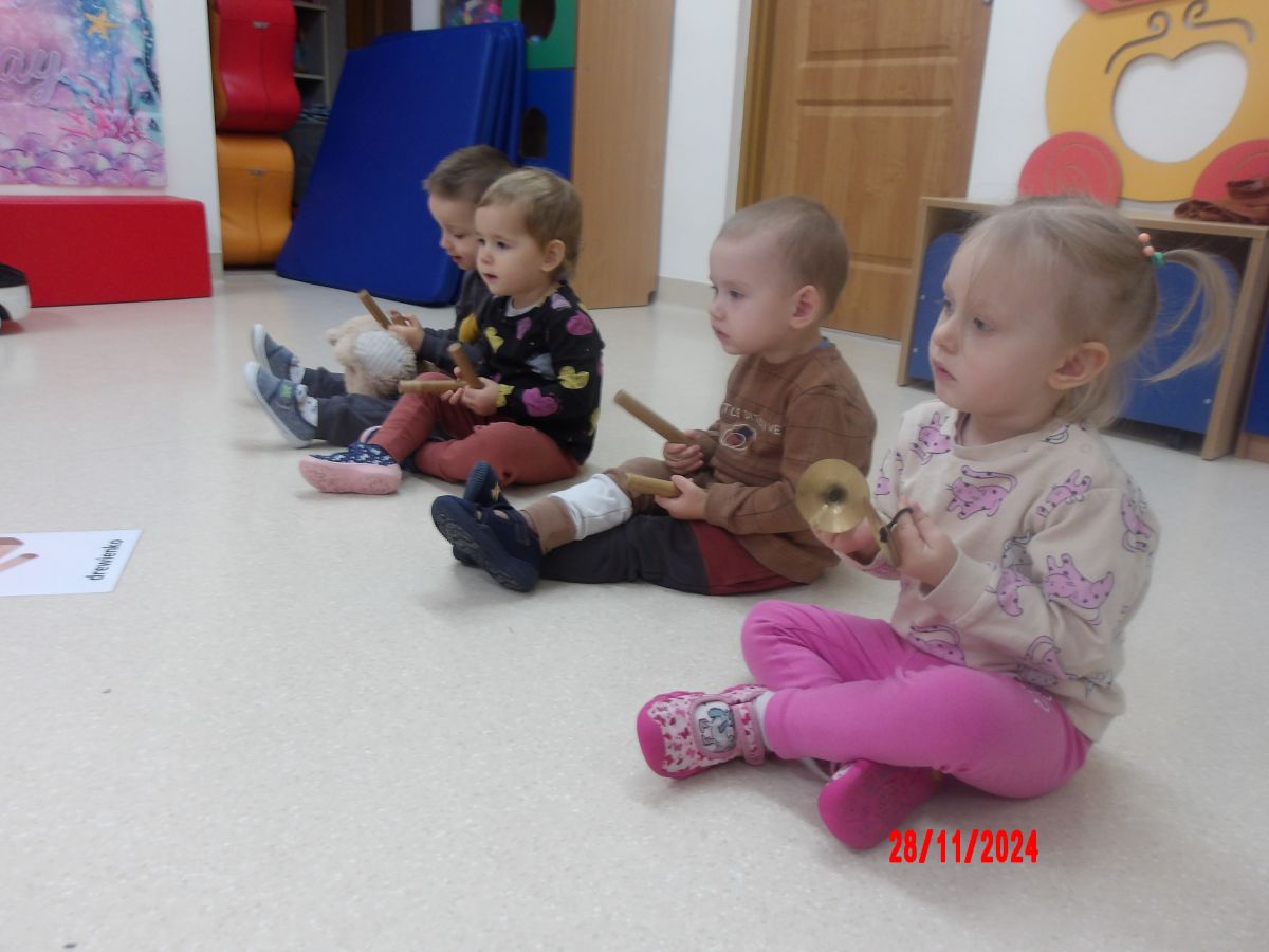 Opublikowano: pt., 11/29/2024 - 11:20 Zajęcia muzyczno-rytmiczne prowadzone przez Panią Anię, inspirowane piosenkami ,,Na polanie w lesie'' , ,,Wiewiórka mała po lecie biegała''.